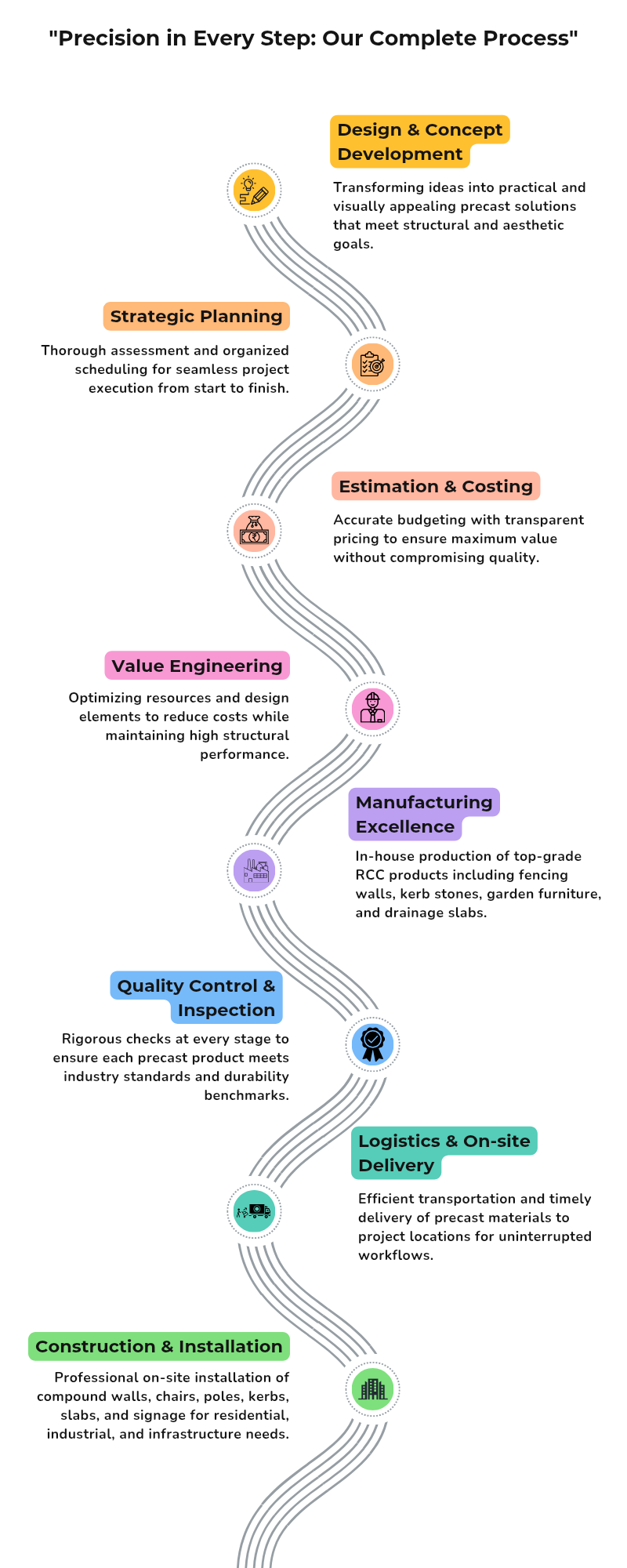 Our precast concrete products are manufactured in controlled environments to ensure consistent quality, superior durability, and long-lasting performance in every structure.